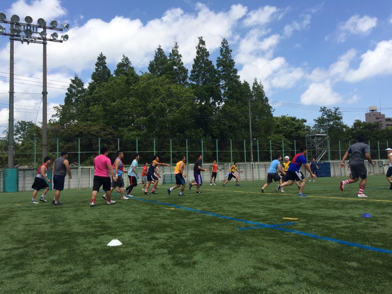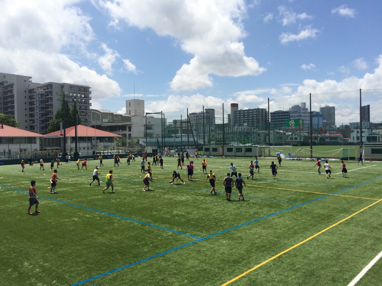 試合翌日でしたが、朝から深川グランドに集まりミーティングを行い、その後に全員でタッチフットのようなゲームを行いました。