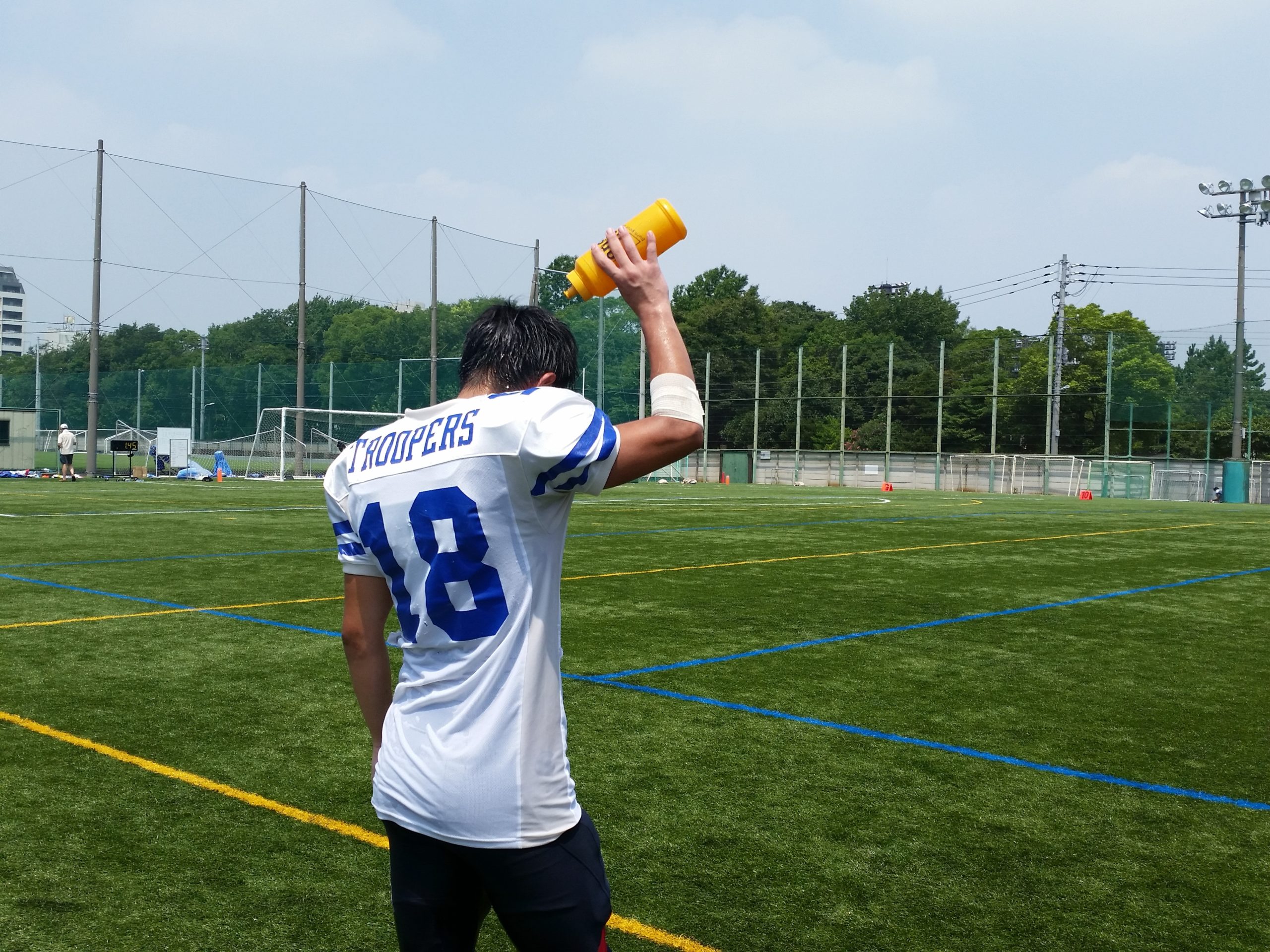 プレイ中以外はこまめにヘルメットをはずして、少しでも暑さを凌ぎます。