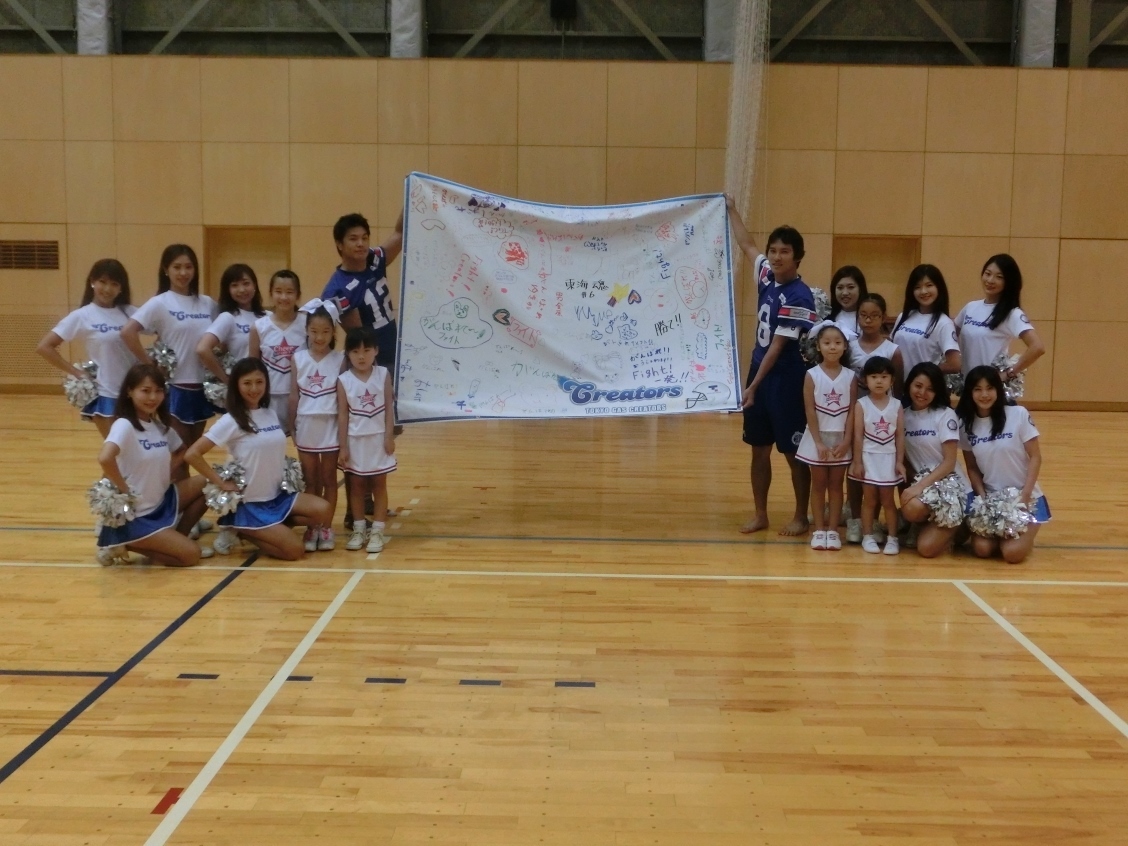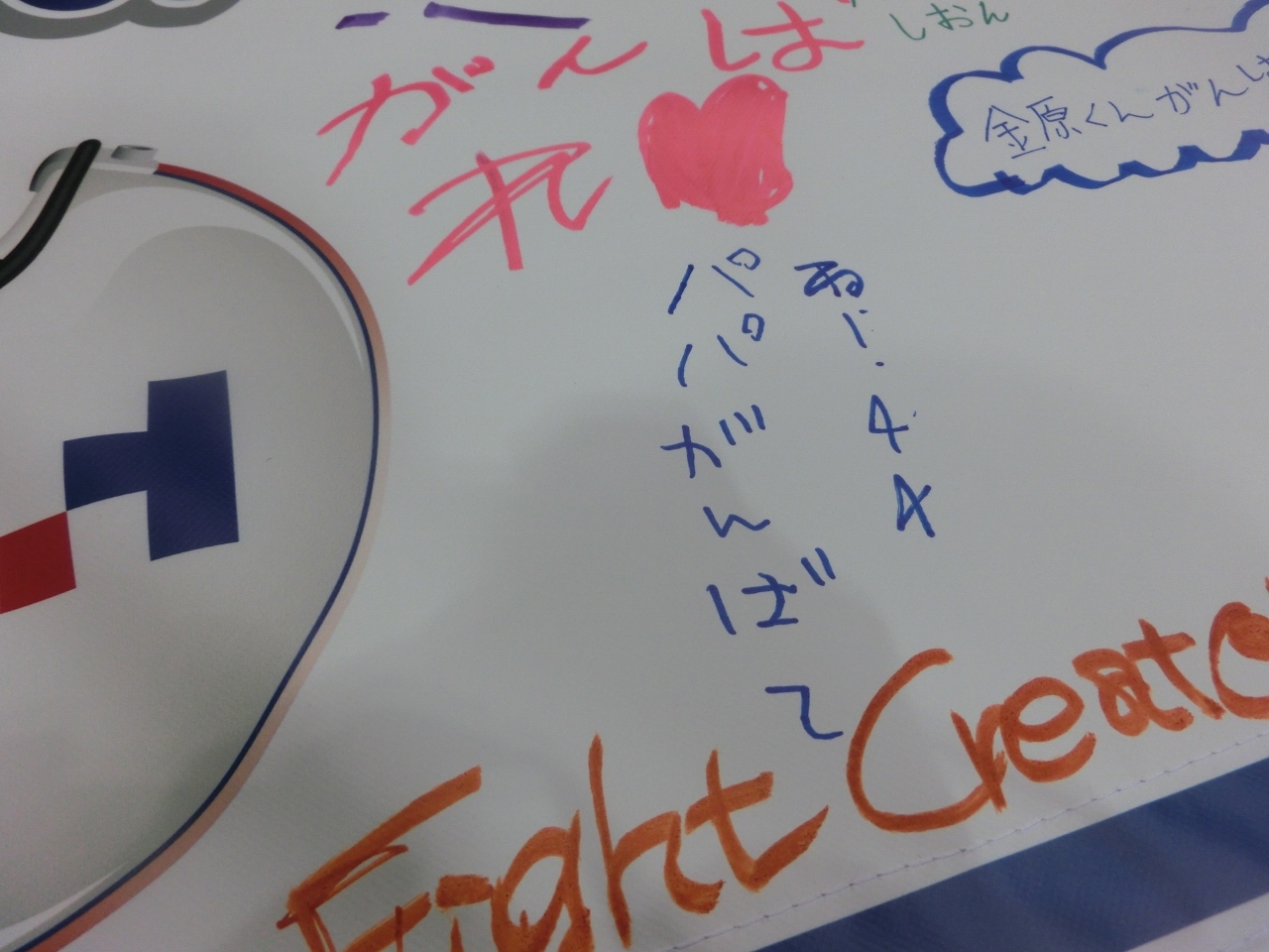 毎年恒例となっていますが、今年もキッズチアリーダー達からの寄せ書き横断幕をいただきました!
