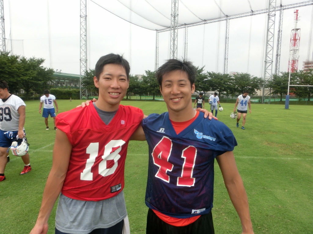転勤で残念ながら引退してしまった#10QB岩崎の代わりになぜか中央に#55OL木下選手が仲間入りしています。