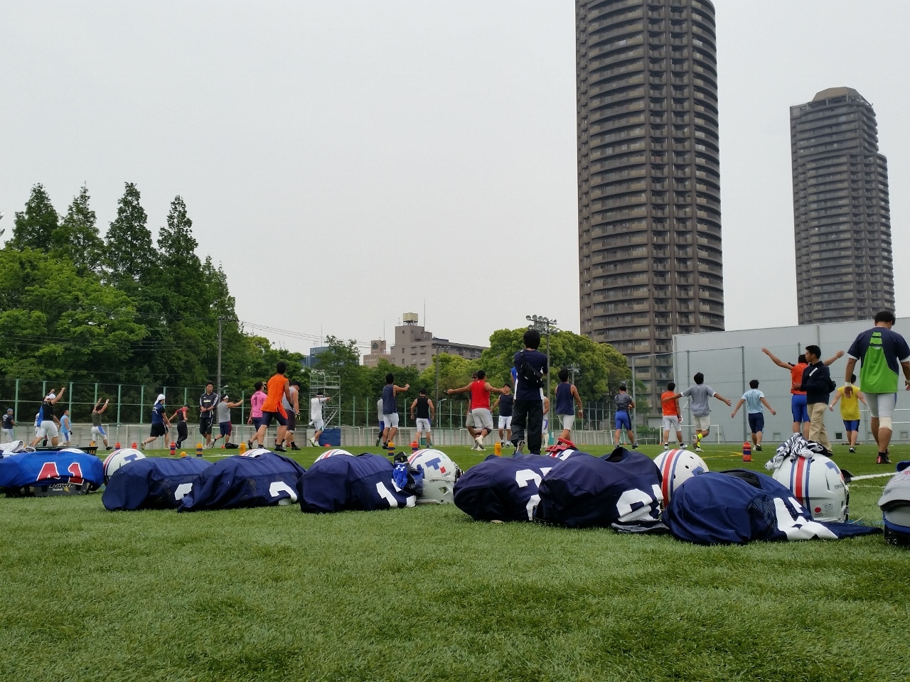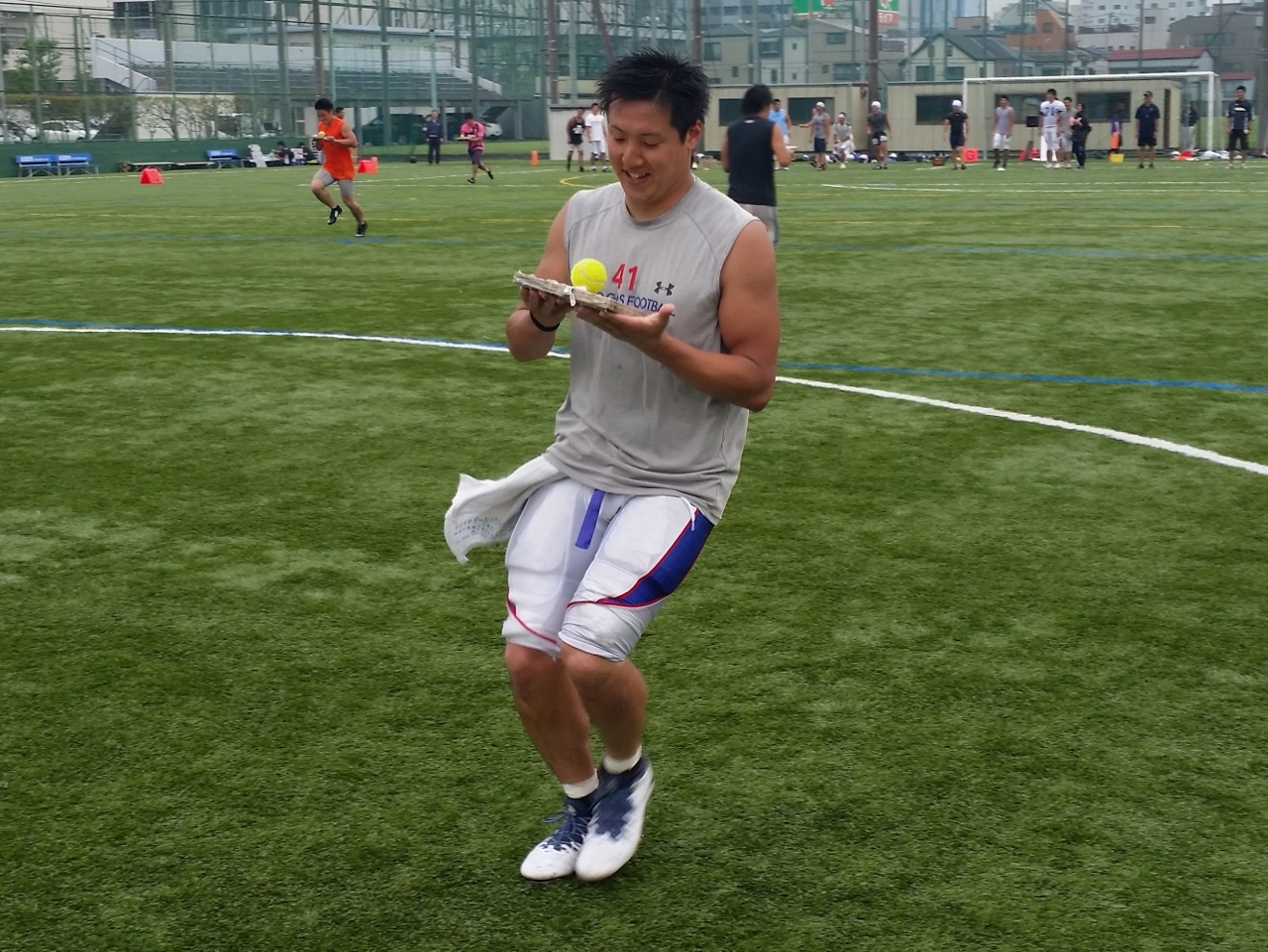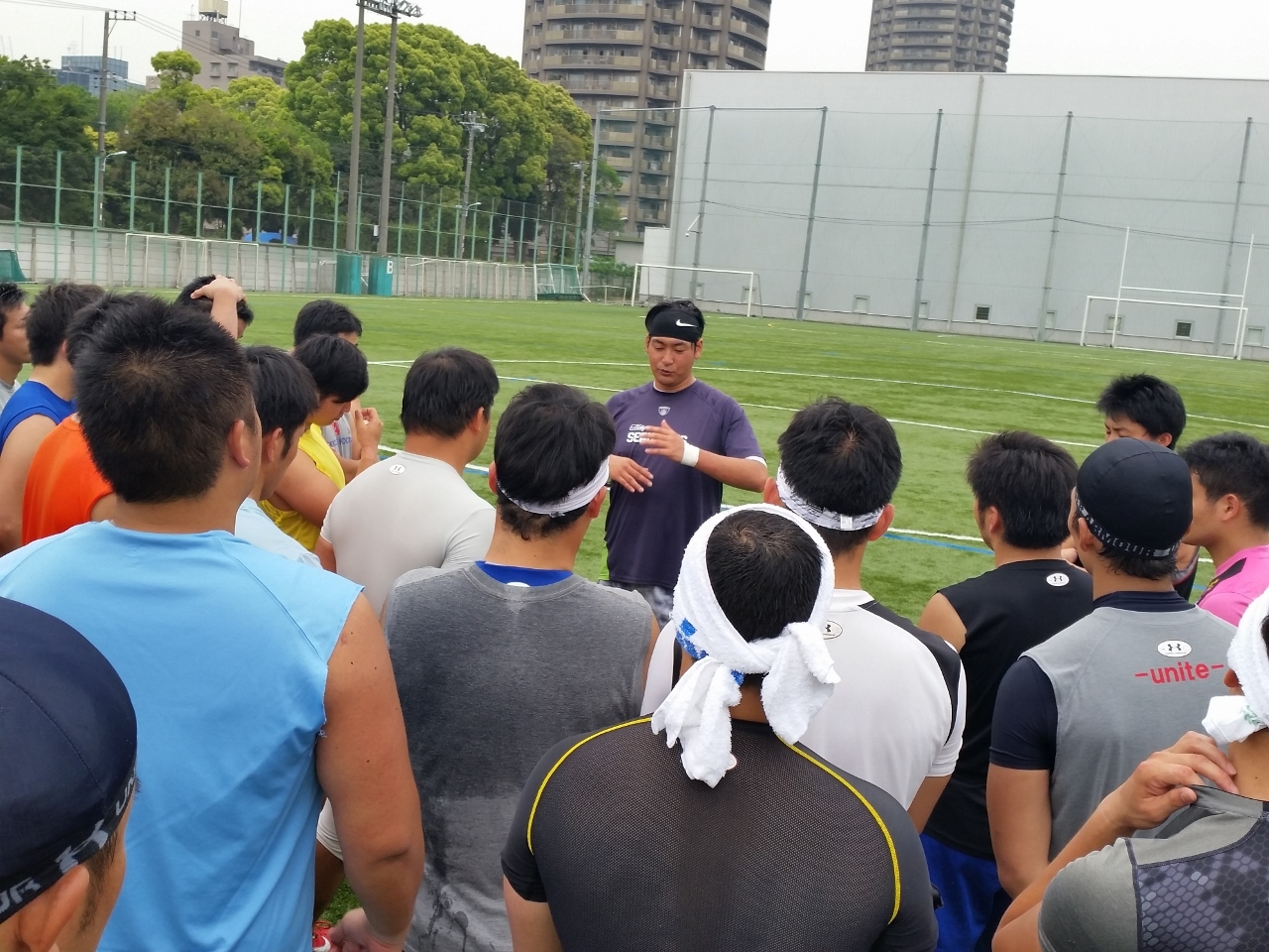 ちなみに、最下位のチームには100yd往復ダッシュの罰ゲームがありました・・・。練習最後のハドルは#9DL金子選手からの一言です。