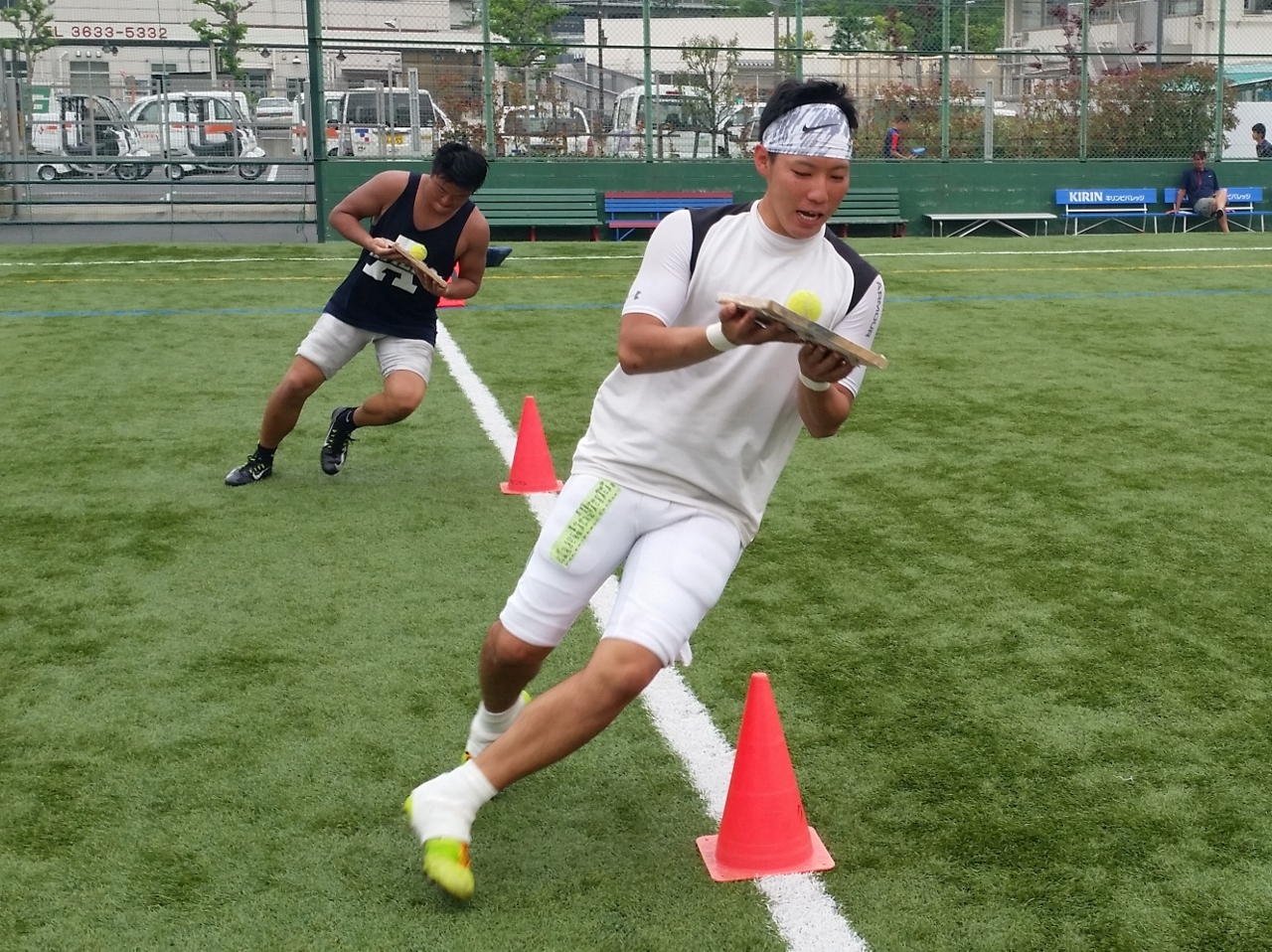ボールを落とさないように大事に大事に慎重に運びながらも、勝負がかかっているのでダッシュ必須です。