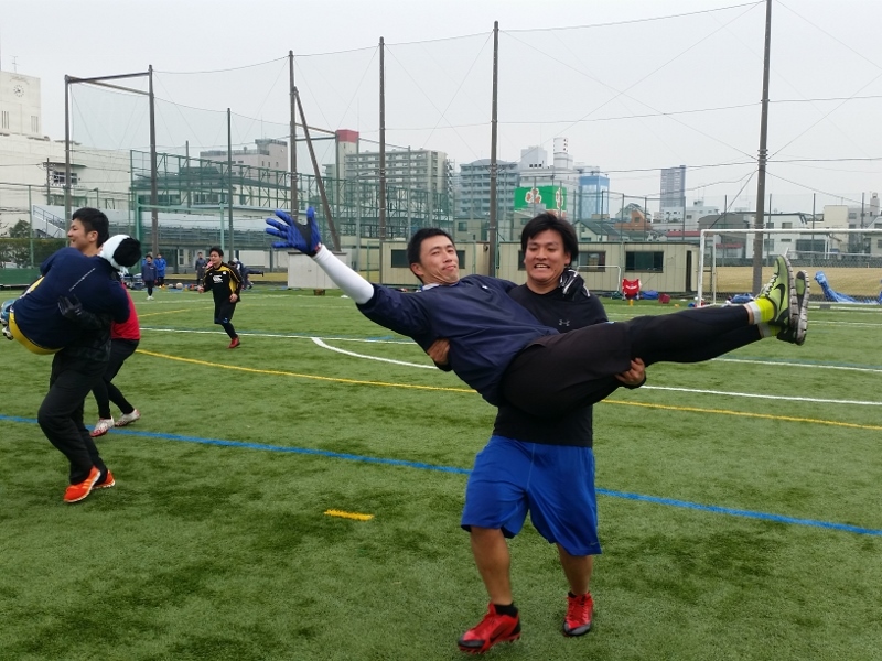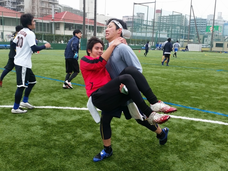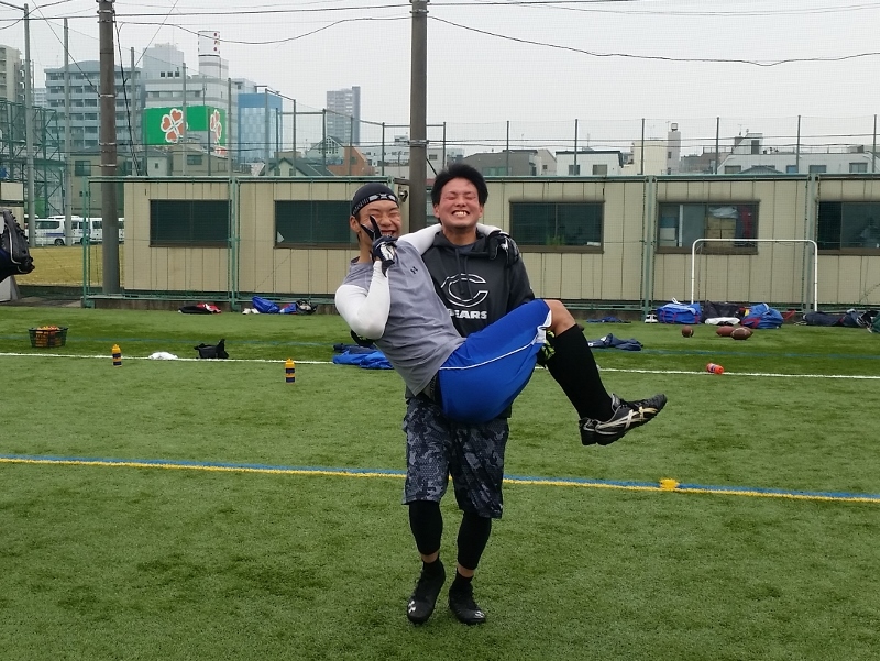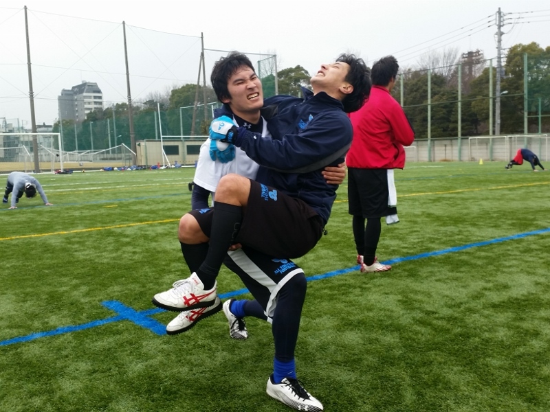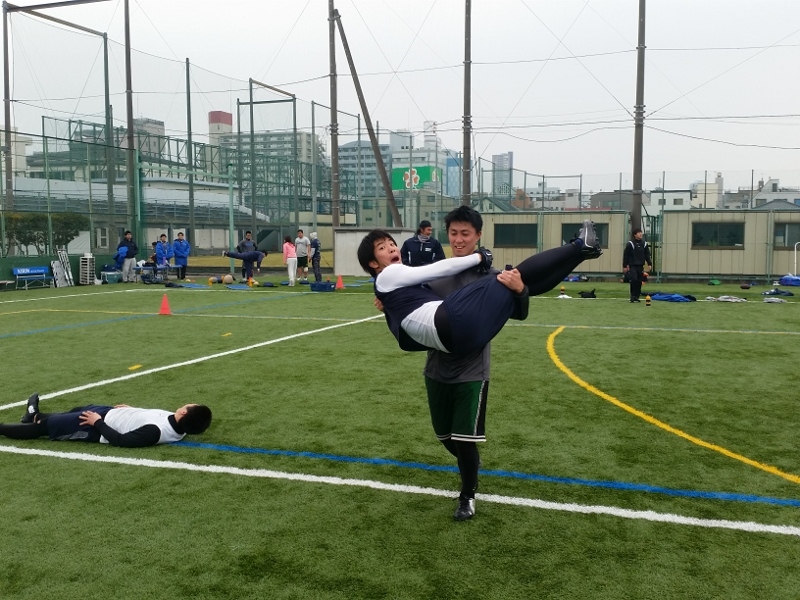 ダッシュ系メニューや2人一組での筋力トレーニングなど、寒空の下たくさんの汗を流しました。お姫様抱っこ&ランのメニューでは抱っこしている選手は必死の形相ですが、抱っこされている選手はこの余裕の表情。