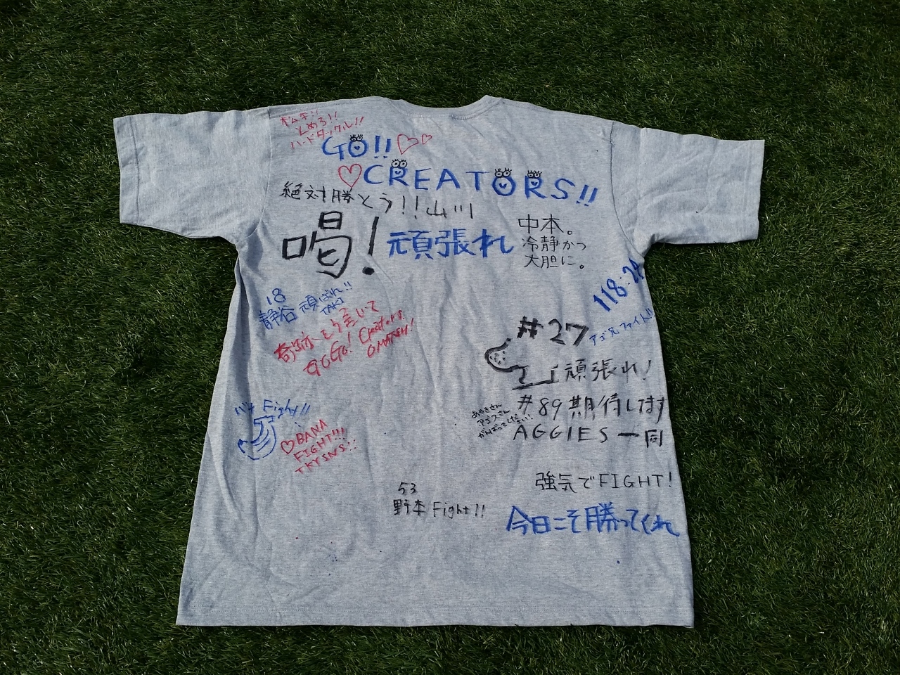ご報告が遅くなりましたが、初戦からチーム受付等でいただいた応援メッセージTシャツをご紹介します。