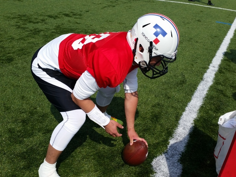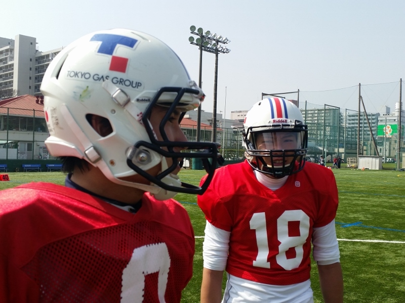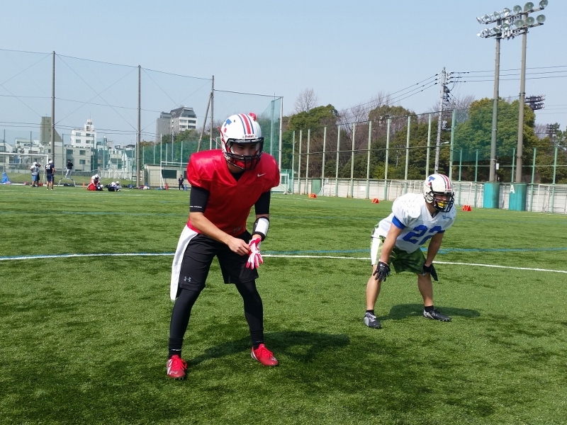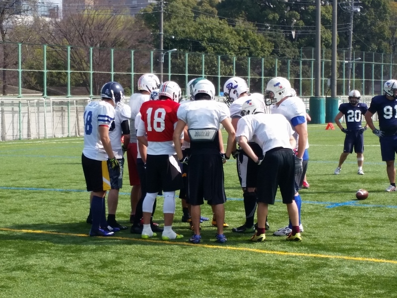 いつも以上にテンポ良く、練習を効率よく進めていくよう意識して行いました。QBのユニット練習風景です。