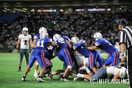 パイレーツ戦のギャラリーはこちら第3Q、ゴール前1yd地点からパイレーツの1stダウン