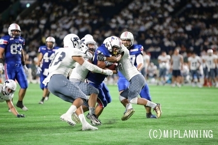 「みんなで止めたタッチダウン」第4Q、#22RB尾花選手のランプレイ