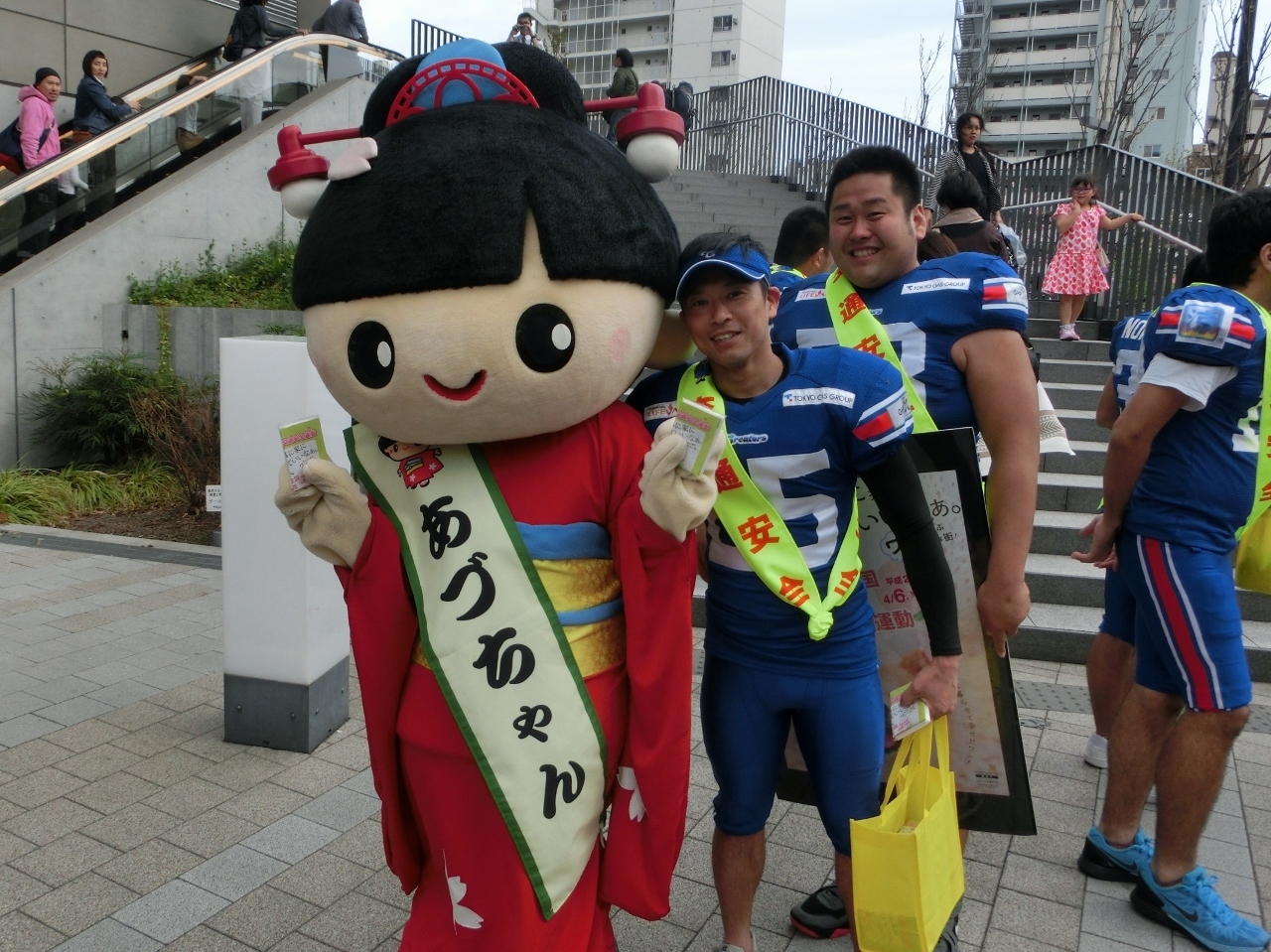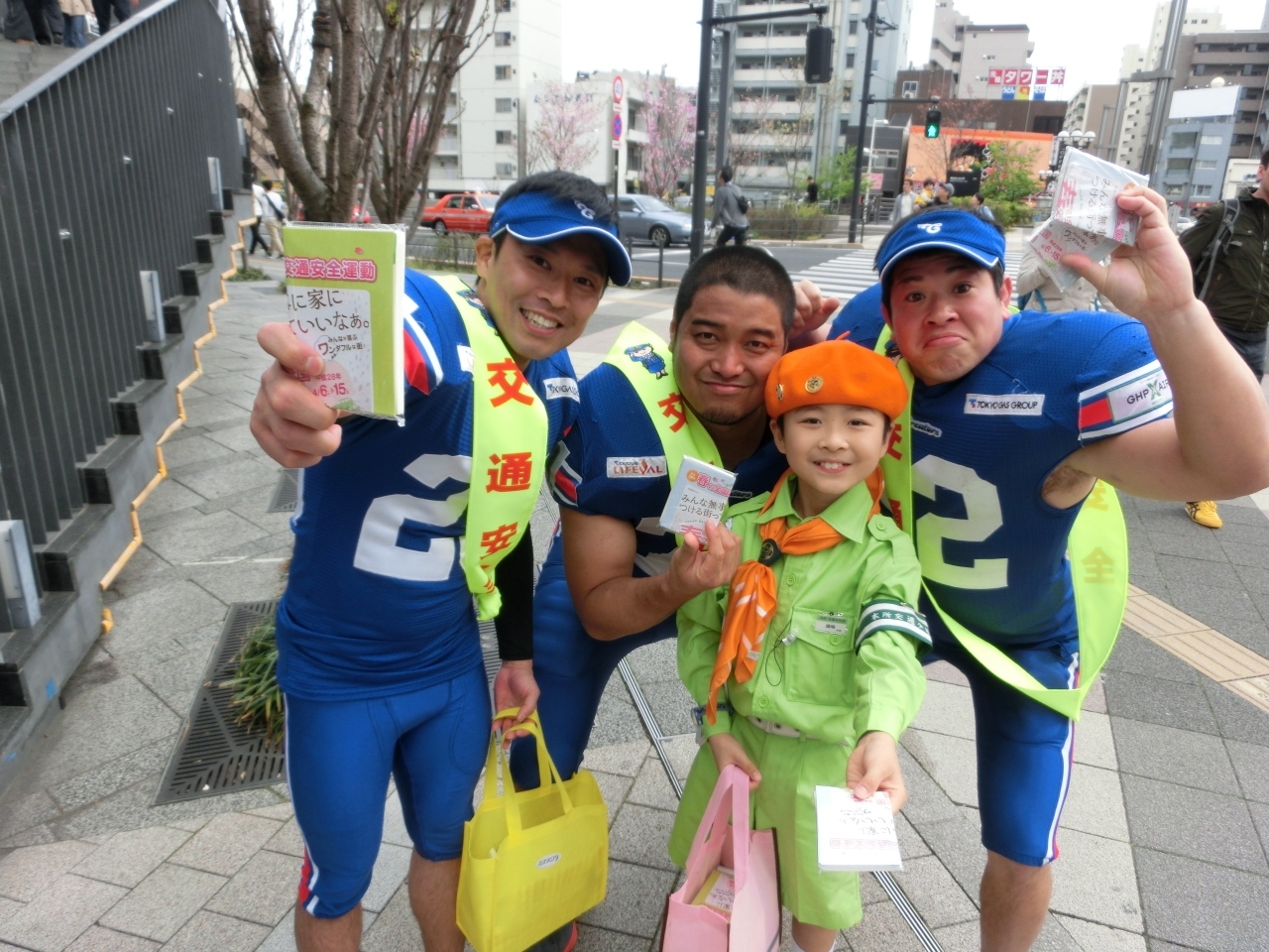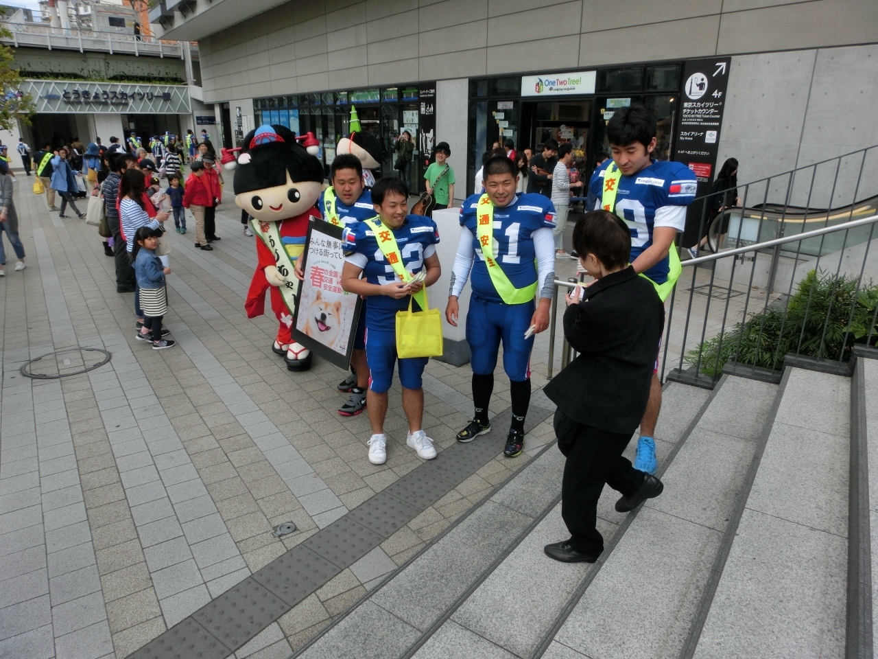 また、たくさんの方に「アメフト?」と声をかけていただいたり、「ちょっと触らせて~」と触られたり(笑)とアメフトを知っていただく良い機会にもなりました。