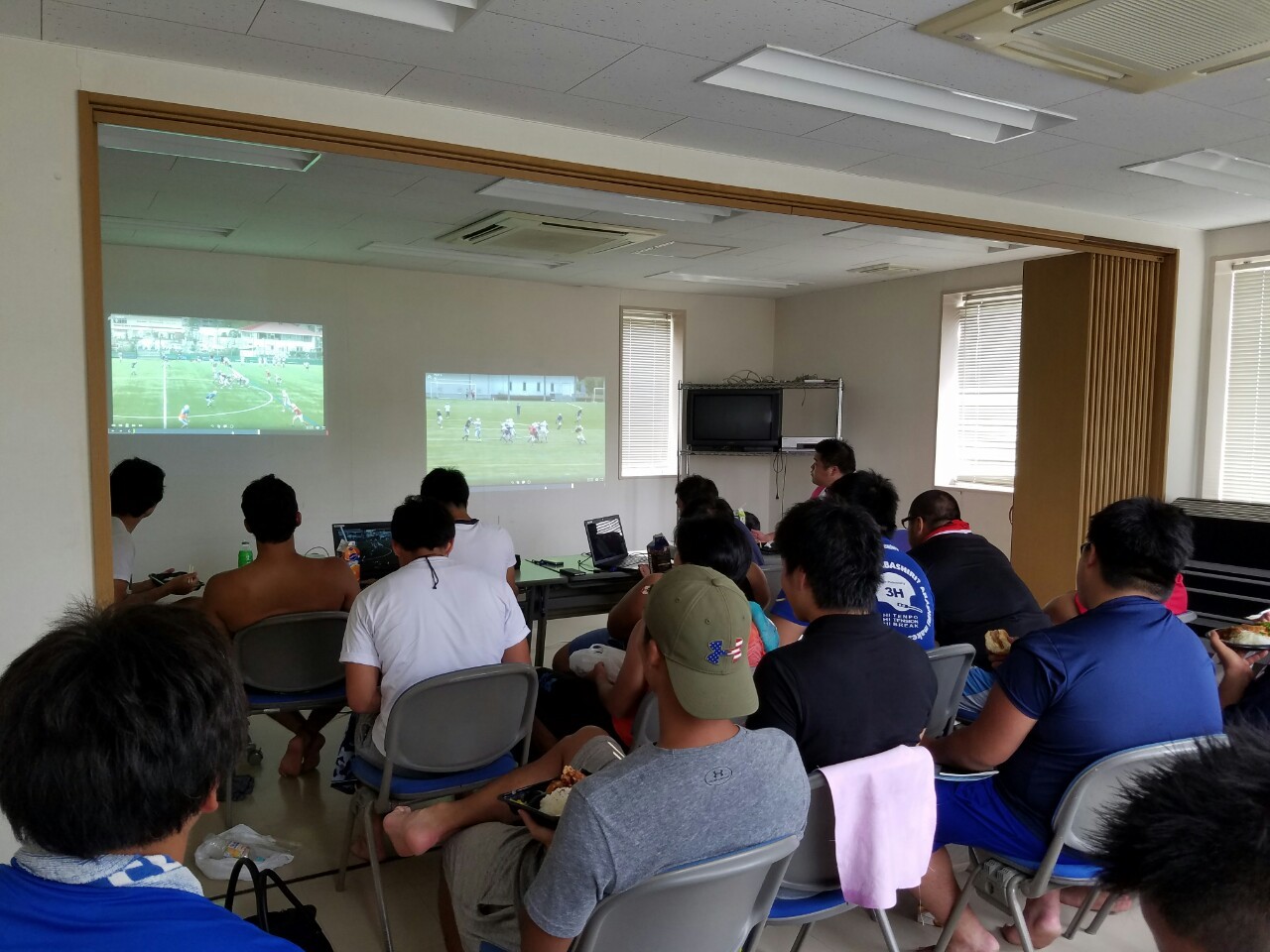 OFF側は#37RB萩野谷選手が誰よりも早くミーティングルームへ行き、冷房を入れたりパソコンやプロジェクターの準備をしてくれていました。