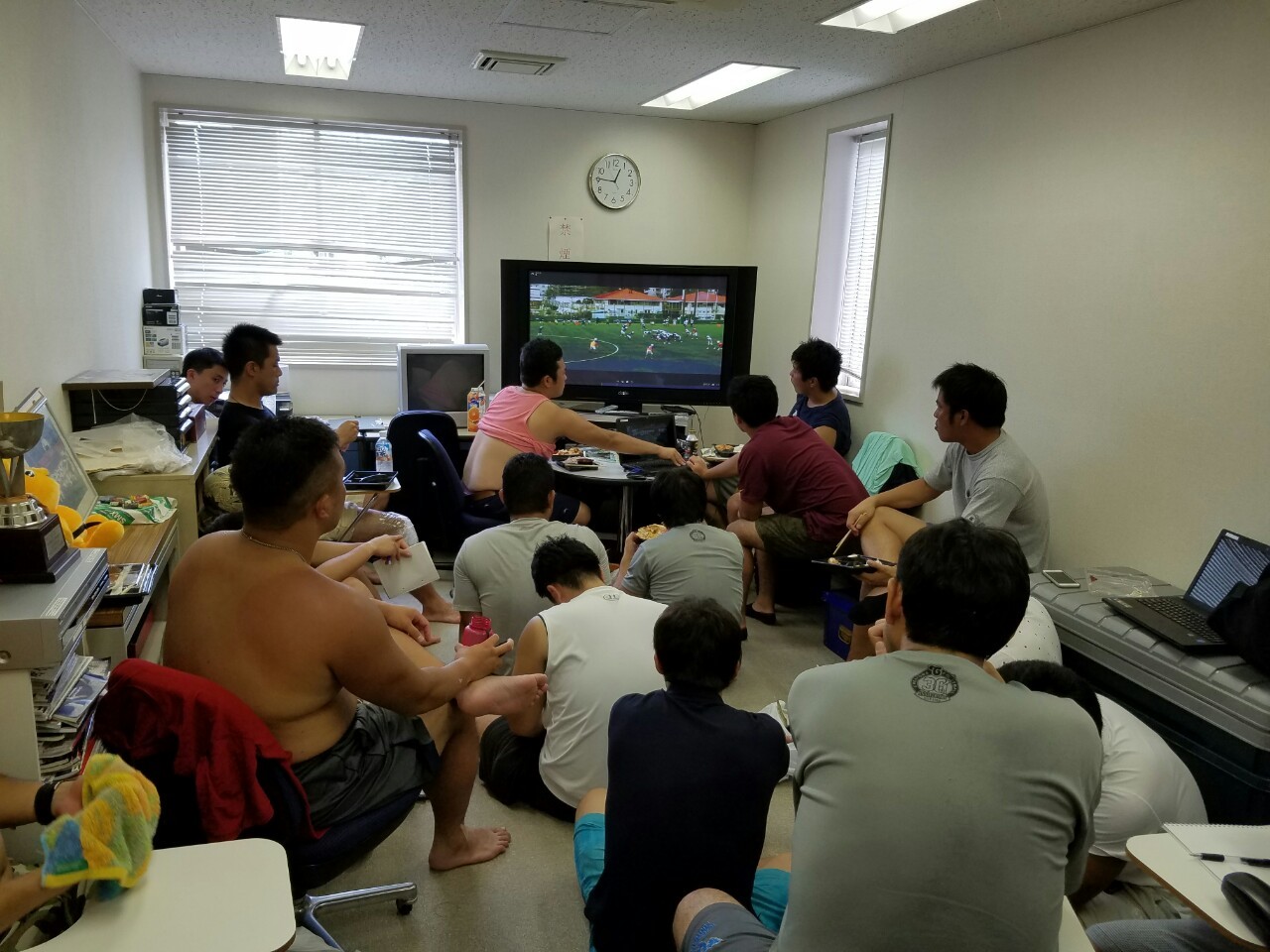 練習後はビデオを見ながらミーティングです。