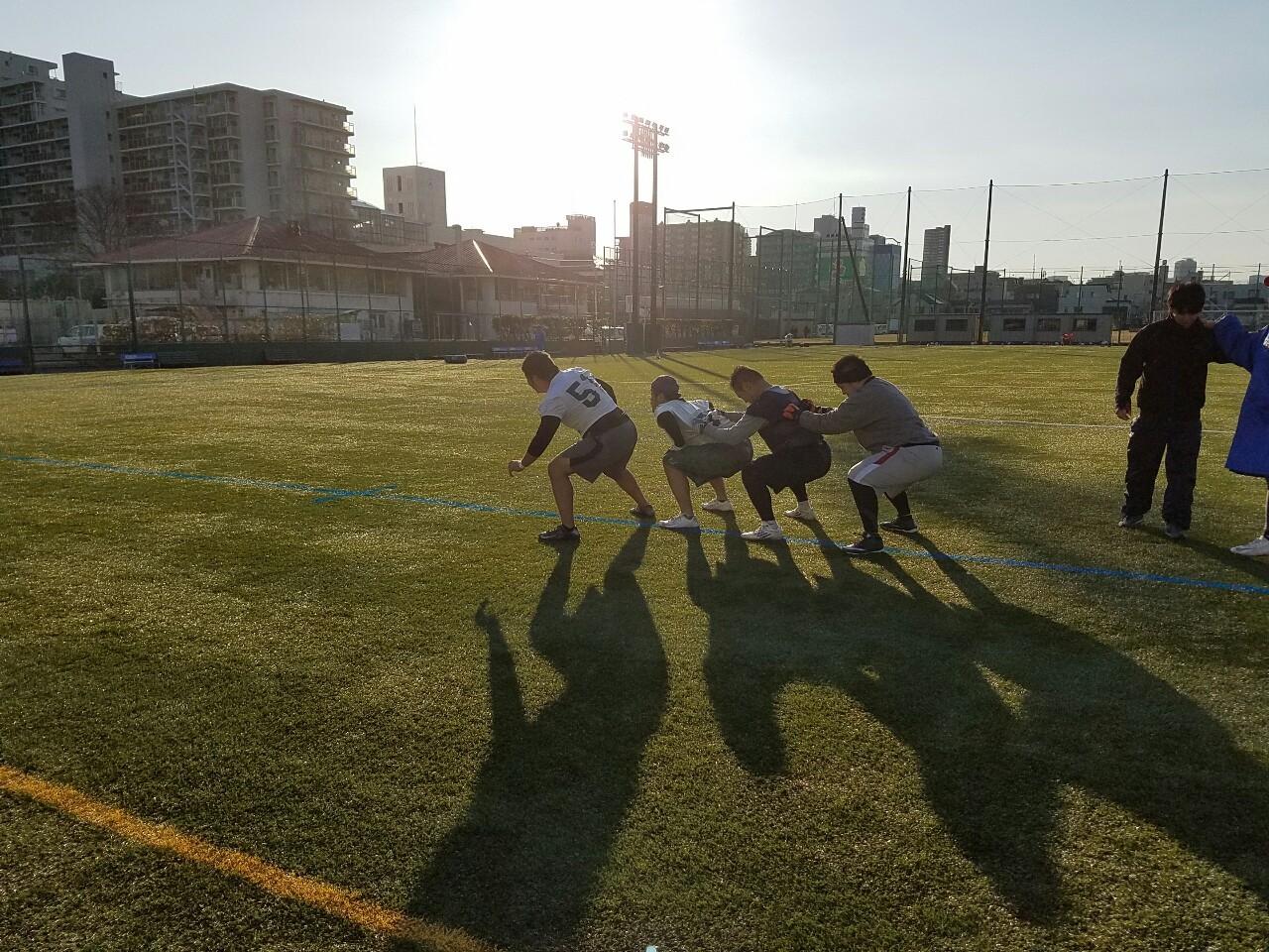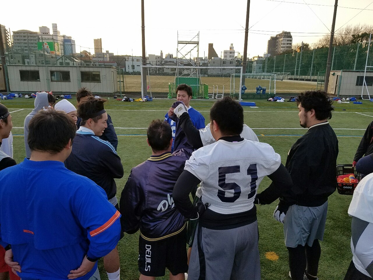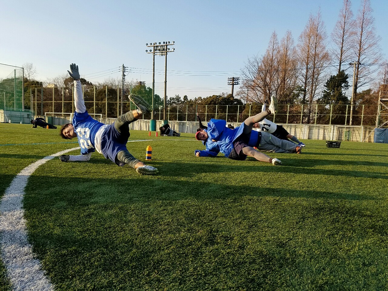 練習後のハドルでは#12LB安田主将から「よい運動になりました」と