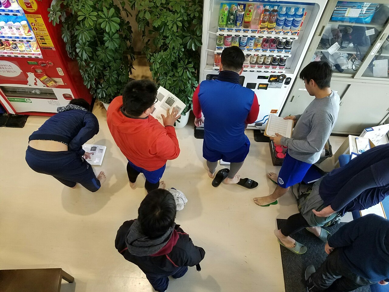 体重測定は毎回の練習前後に測定し、1回の練習での体重の増減を記録に残しています。