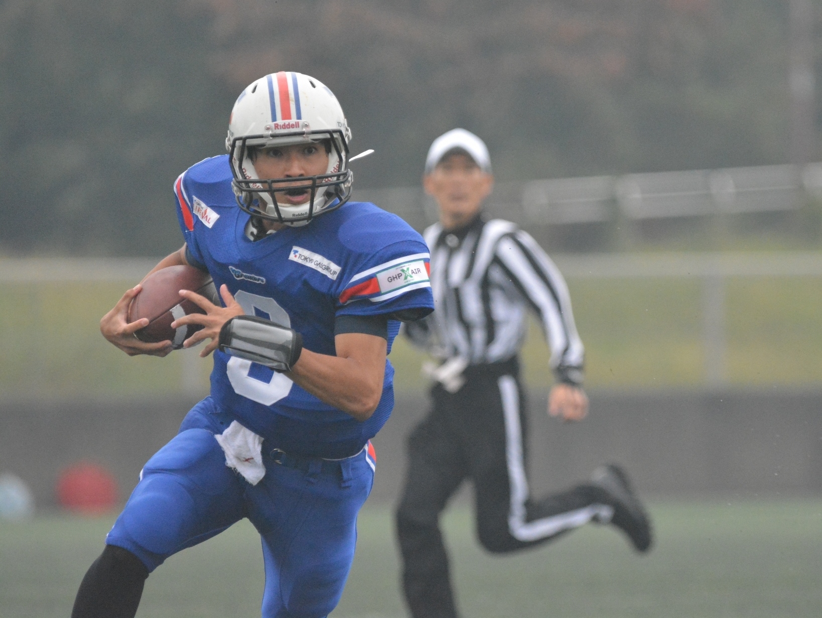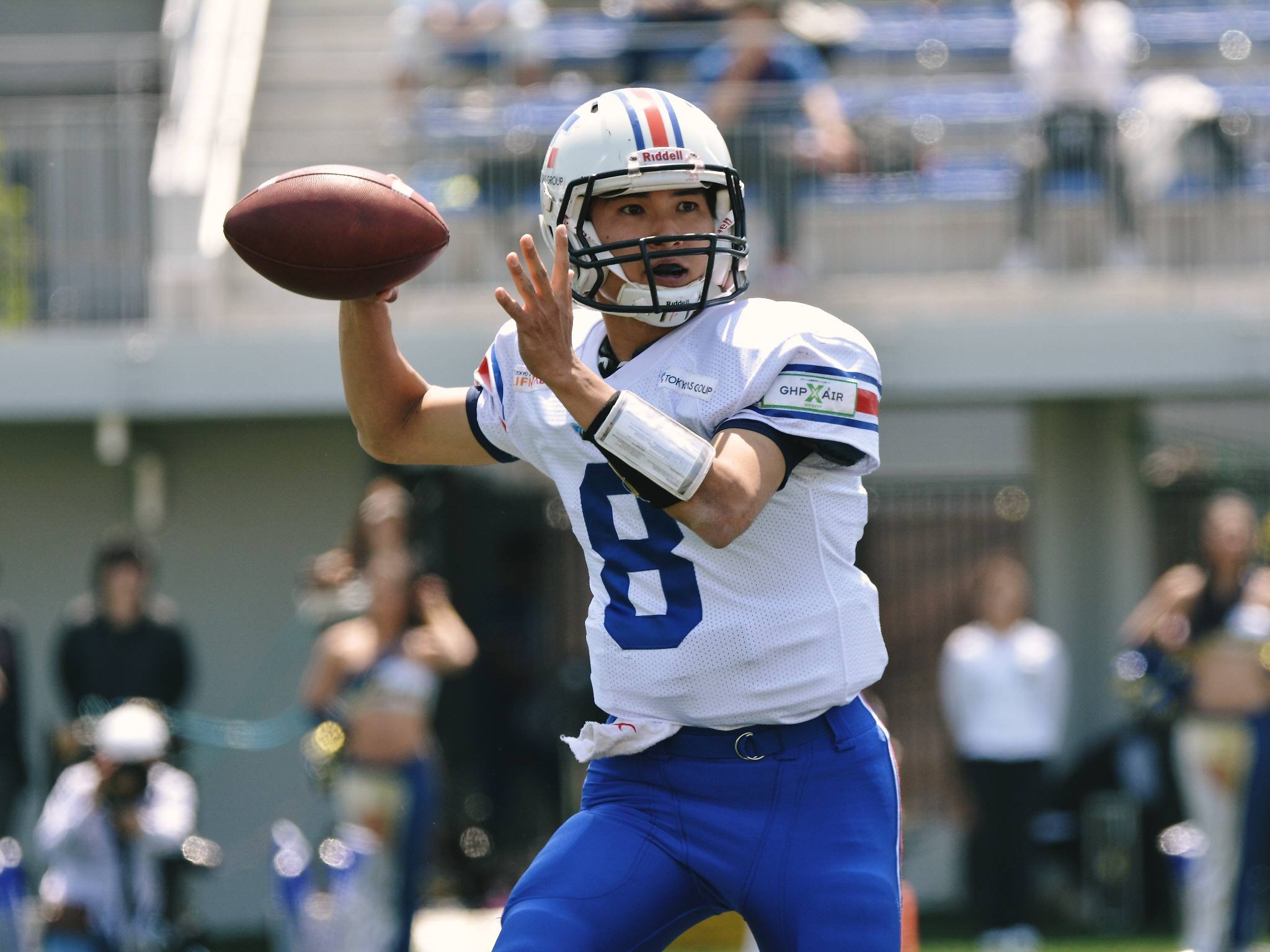 今シーズンの主将を務めます、クォーターバック背番号8、德島秀一と申します。